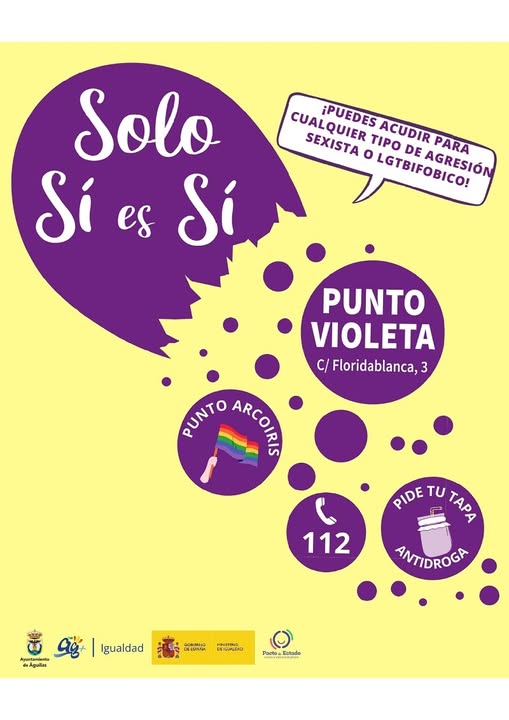 La Concejalía de Igualdad, en coordinación con las Fuerzas y Cuerpos de Seguridad, instalará de nuevo el punto violeta‑arco iris en Floridablanca y repartirá tapas reutilizables para prevenir sumisión química, además de recomendar el uso de la app Alertcops.