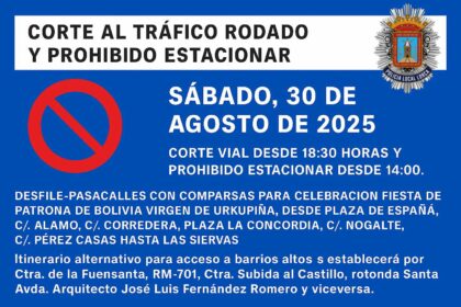 Corte al tráfico rodado este sábado 30 de agosto por la fiesta de la Patrona de Bolivia