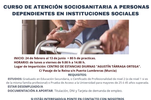 El curso gratuito se impartirá en el Centro de Estancias Diurnas ‘Agustín Tárraga Ortega’ e…