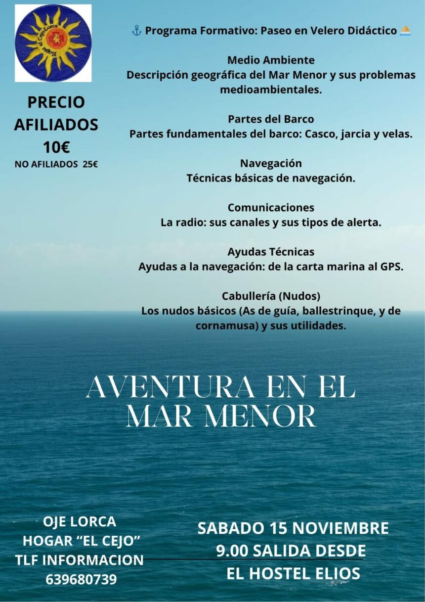 LORCA, 31 de octubre de 2025.– El Ayuntamiento de Lorca, en colaboración con la Organización Juvenil Española (OJE), ha organizado dos nuevas actividades de ocio formativo para jóvenes de 6 a 17 años: un campamento temático medieval y una jornada de navegación en el Mar Menor, ambas programadas para noviembre.