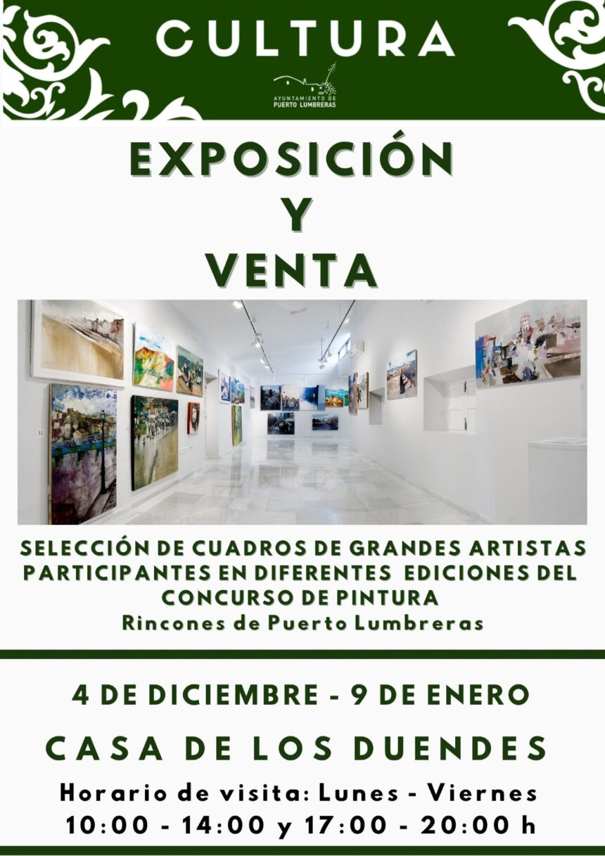 Del 4 de diciembre al 9 de enero, la sala de exposiciones de la Casa de los Duendes de Puerto Lumbreras se transformará en una galería de arte dedicada a las mejores obras del Concurso de Pintura ‘Rincones de Puerto Lumbreras’. La exposición abre la oportunidad de adquirir cuadros originales de reconocidos artistas que han participado en el certamen desde la edición de 2016 en adelante.