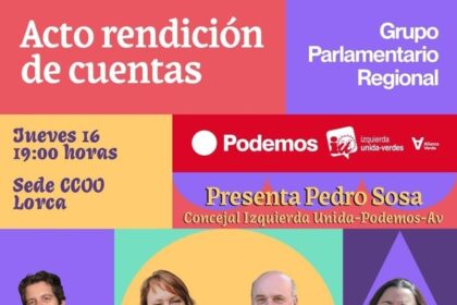 El Grupo Parlamentario Regional de Podemos, Izquierda Unida y Alternativa Verde celebrará…