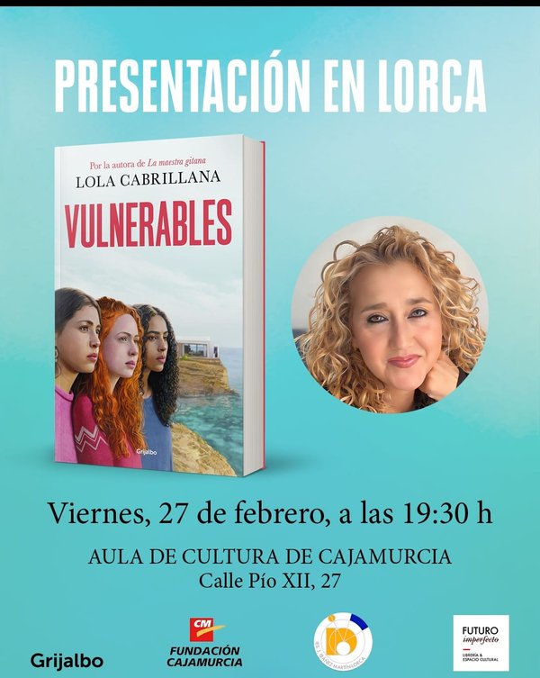 Presentación de «Vulnerables» Lola Cabrillana 27 de febrero Aula de Cultura de Caja Murcia 19:30 Tras el fenómeno de La maestra gitana, Lola Cabrillana regresa con Vulnerables, una obra valiente que abandona los paisajes del mercadillo para adentrarse en los oscuros recovecos del mundo digital. En esta historia, la autora nos presenta a Tamo, Arabia y Estefanía, tres jóvenes que, sin conocerse, terminan unidas por un error común: la confianza ciega en desconocidos a través de las pantallas. Con una narrativa ágil y estructurada a tres voces, Cabrillana nos sumerge en una trama de suspense donde el miedo a la viralización y el chantaje exponen la fragilidad de la adolescencia actual. El libro no es solo una ficción vibrante; es un grito de alerta sobre los peligros de la sobreexposición y la urgencia de proteger a los más jóvenes en el ecosistema de las redes sociales. Como maestra y activista, Lola vuelve a demostrar su capacidad para despertar conciencias, retratando con honestidad la lucha de madres y docentes por rescatar a estas chicas del abismo. Vulnerables es, en definitiva, una lectura imprescindible que nos obliga a abrir los ojos ante una realidad que late bajo el brillo de nuestras pantallas.