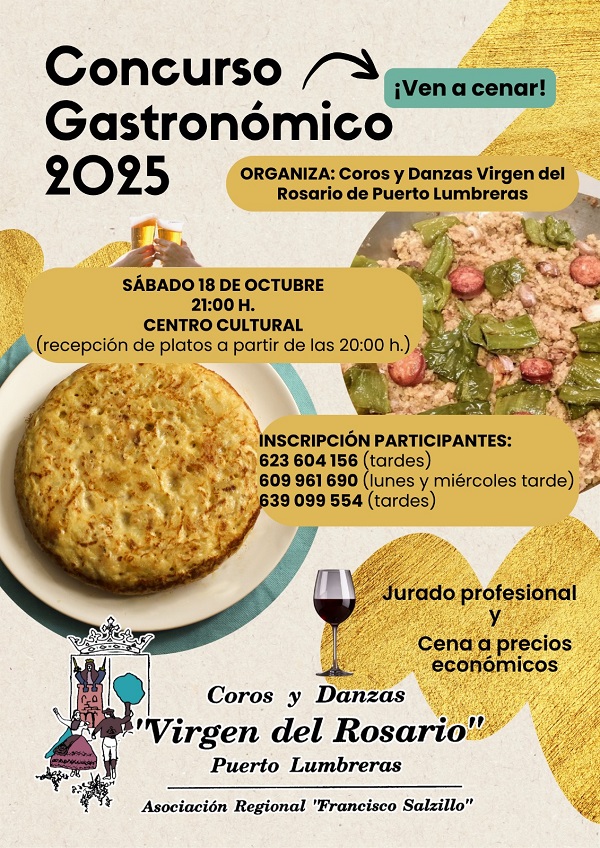 El certamen está organizado por el grupo Coros y Danzas ‘Virgen del Rosario’ y cuenta con el respaldo del Ayuntamiento de Puerto Lumbreras.